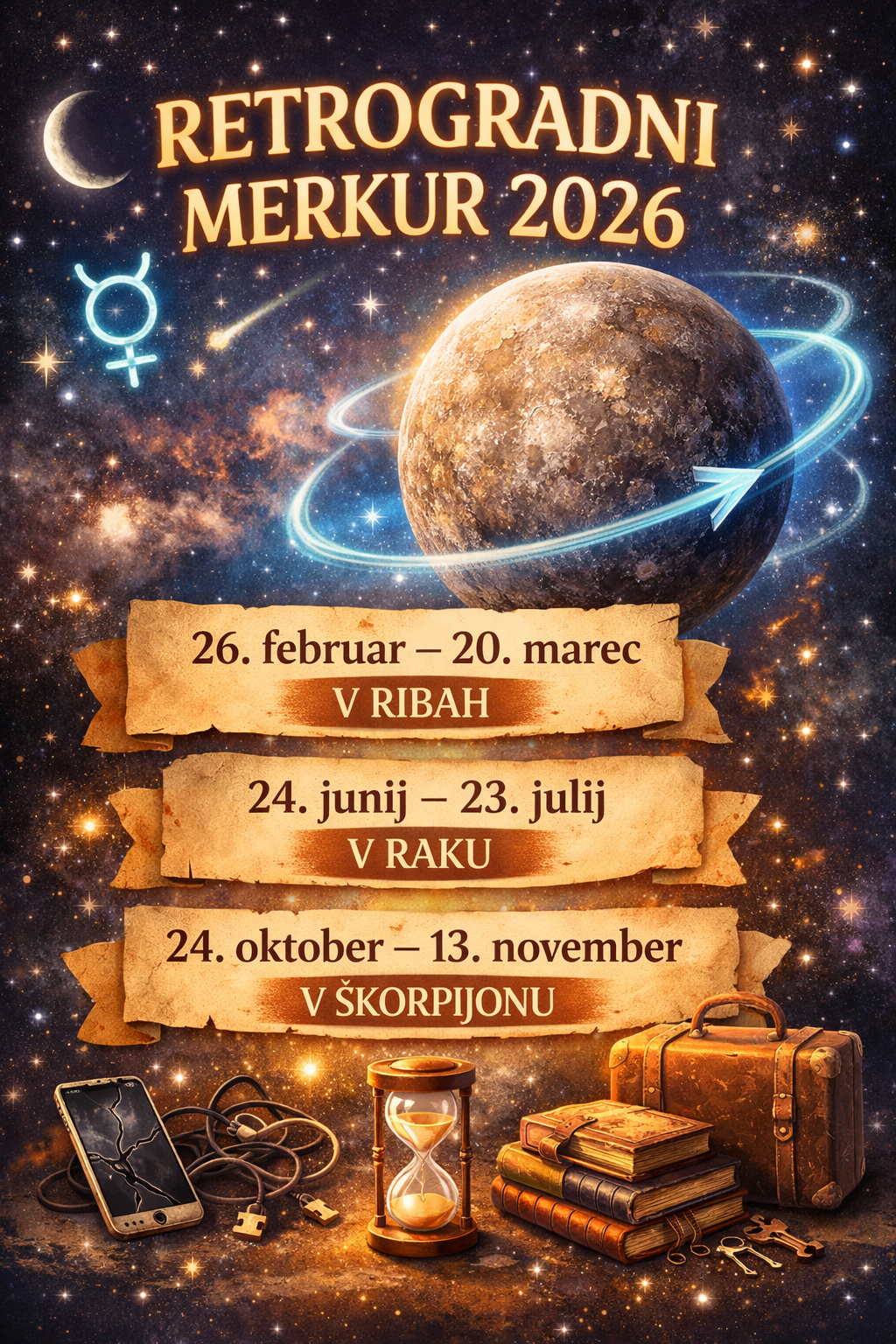 V letu 2026 bo Merkur v retrogradnem gibanju v vodnih znamenjih, kar poudarja čustveno in reflektivno naravo obdobja: